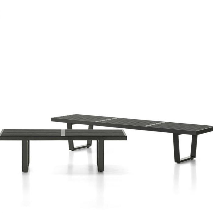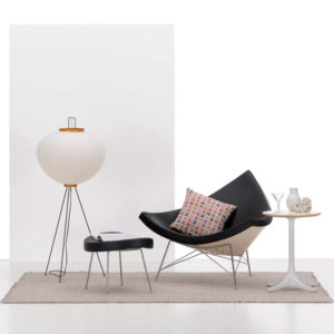 À son retour aux États-Unis, Nelson entame une carrière de journaliste en architecture et publie des ouvrages révolutionnaires, dont « Tomorrow’s House » (1945), qui introduit le concept innovant du Storagewall. Son cheminement le conduit à Herman Miller Furniture, où il devient directeur du design, contribuant ainsi à créer des pièces devenues des classiques du design moderne, telles que le banc Nelson Bench (1946) et le fauteuil Coconut (1955) édité par Vitra .