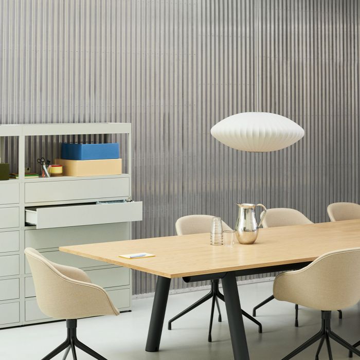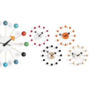 Sa philosophie du « design total » et son engagement envers les besoins des utilisateurs se reflètent dans ses œuvres, tandis que sa collaboration avec des designers éminents comme Charles et Ray Eames renforce son influence. Parallèlement à son travail chez Herman Miller, Nelson fonde sa propre agence à New York en 1947, où il crée une série d’horloges révolutionnaires, dont la collection Wall Clocks, aujourd’hui produite par Vitra.