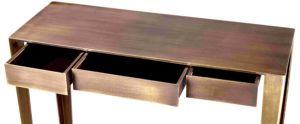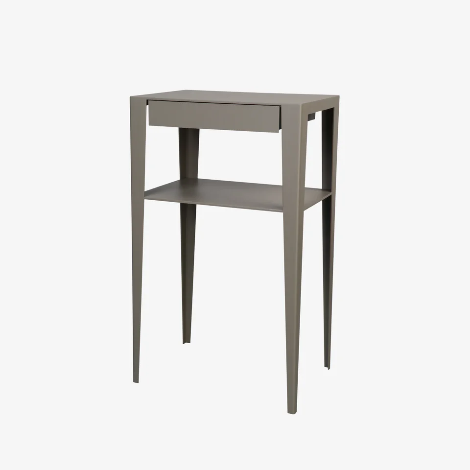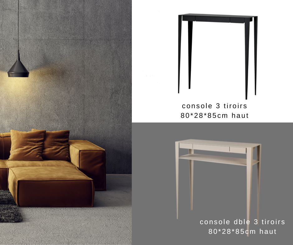 Les consoles design de la collection GRANDES SŒURS, conçues en acier laqué époxy mat, se distinguent par leurs lignes fines et épurées. Alliant esthétique et fonctionnalité, ces consoles design s’intègrent parfaitement dans les entrées et couloirs. La version avec trois tiroirs offre un espace de rangement pratique pour les clés, gants ou documents. Récompensée par le label VIA (Valorisation de l’Innovation dans l’Ameublement) en 2012, cette console témoigne de l’innovation et de la qualité supérieure de l’Atelier Français du Design (AFD).