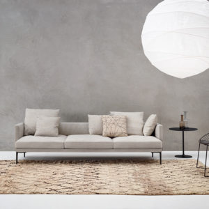 Conçu par Doshi & Levien et édité par Arper, le canapé Shaal présente une structure à la fois solide et moelleuse, évoquant l’image d’un panier rempli de coussins. Enveloppant confortablement ceux qui s’y installent, il offre une sensation chaleureuse et tactile. Composé d’une coque de soutien entourant un rembourrage généreux, le design élégant de Shaal le soulève délicatement au-dessus du sol.