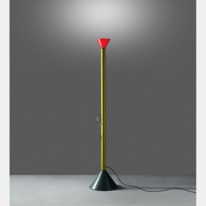 Conçu par Ettore Sottsass en 1982 pour Artemide, le lampadaire Callimaco est une pièce emblématique du design contemporain. Sa conception audacieuse et colorée témoigne des recherches innovantes de Sottsass sur l’utilisation de la couleur dans le design. Fabriqué avec des matériaux de haute qualité, ce lampadaire se distingue par sa base et son diffuseur en acier verni, ainsi que par sa tige en aluminium verni.