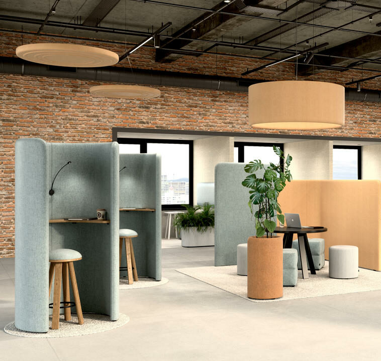 Buzzispace propose également des luminaires qui allient éclairage et insonorisation, tels que le buzzishade et le buzzodôme, adaptés aux espaces de travail, aux salles de réunion, aux showrooms, aux salles d’attente, aux cabinets et aux intérieurs, y compris les home-studios.