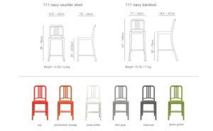 Avec la chaise 111 Navy, Coca-Cola et Emeco se sont associés pour résoudre un problème environnemental en transformant les déchets des consommateurs en une chaise durable, intemporelle et classique. Fabriquée à partir de 111 bouteilles recyclées, la chaise 111 Navy est une véritable innovation. Composée de 65% de PET recyclé et 35% de fibre de verre, elle conserve la robustesse et la légèreté de la chaise 1006 Navy. Adaptée à une utilisation intérieure et extérieure, elle est disponible en 7 couleurs. Devenue une icône du design, ce tabouret haut Emeco s’intègre parfaitement dans les environnements professionnels et résidentiels.