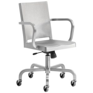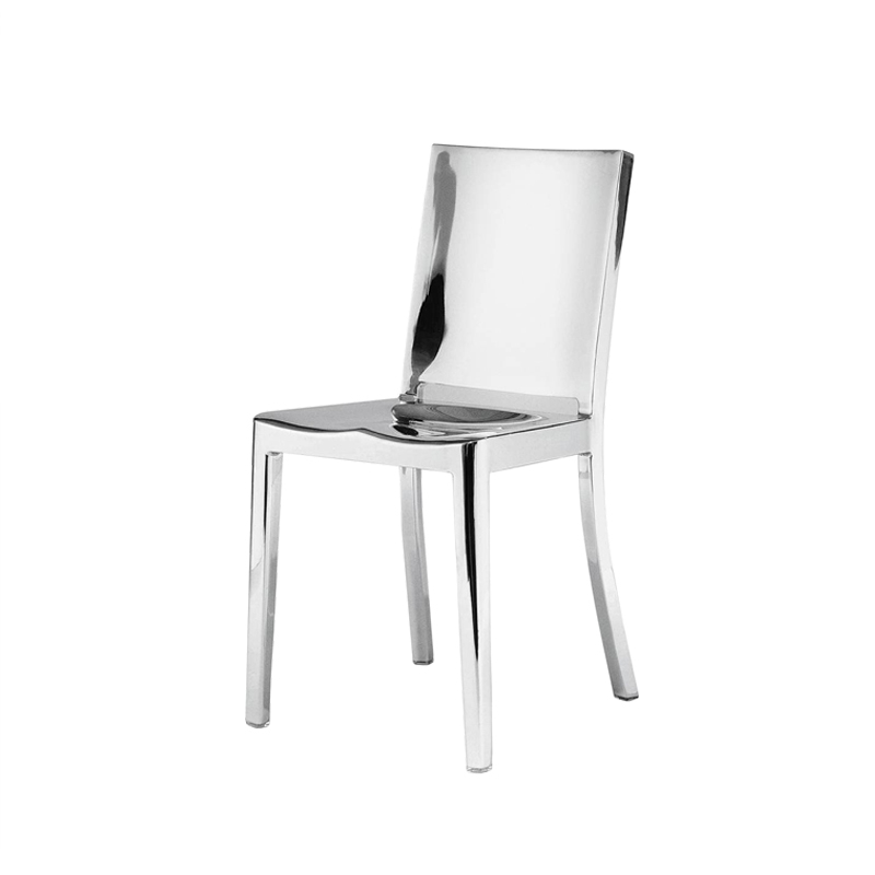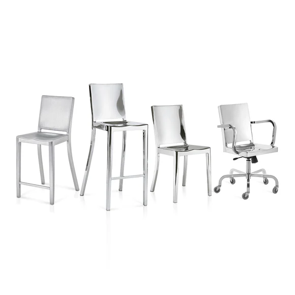 La première collaboration entre Emeco et Philippe Starck a produit la chaise Hudson, créée pour l’hôtel Hudson à New York. Starck la décrit comme une version simplifiée de la chaise Navy. Fabriquée en aluminium recyclé, chaque chaise requiert 8 heures de polissage. Désormais incluse dans la collection permanente du MoMA à New York, la Hudson, légère, ultra-résistante et non-corrosive, est devenue une icône du design. Elle s’intègre parfaitement à tous les styles d’intérieurs.