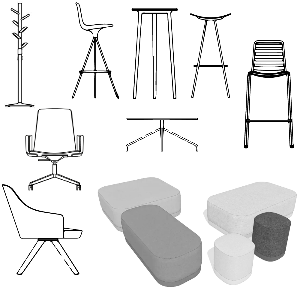 Enea propose une vaste gamme de solutions de mobilier design, alliant esthétique moderne et fonctionnalité. Les collections incluent des chaises comme Kaiak, Lore, Lottus, Eina, et Mate, des tabourets élégants comme Coma et Puck, et des tables comme LTS, Iron et Taber. Ils offrent également des fauteuils et poufs, notamment Kaiak et Oh!, ainsi que des bancs modulaires pour les espaces collectifs. Enea propose des accessoires tels que des porte-manteaux et des coussins pour compléter leurs solutions de mobilier. Les collaborations avec des designers renommés comme Josep Llusca, Gabriel Teixido et Lievore Altherr Molina ont contribué à créer des pièces devenues icôniques .