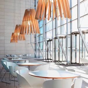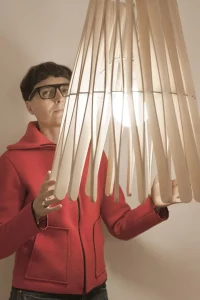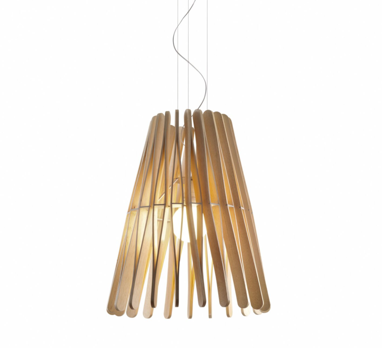La Collection Stick Cone, une création emblématique de la marque Fabbian et du designer Matali Crasset, est fabriquée à partir d’un module en bois d’Ayous. Inspirée par la forme d’une pince, cette suspension présente deux éléments pliés et tendus par un support central, créant un aspect répétitif captivant. Le bois d’Ayous diffuse une lumière chaleureuse et agréable, tandis que la répétition du module crée des jeux d’ombres et de graphismes surprenants. La structure ornée de lattes en Ayous permet une diffusion subtile de la lumière, faisant de la Stick Cone une pièce iconique adaptée à tous les styles d’intérieur.Disponible en lampe de table, lampadaire, applique et suspension.