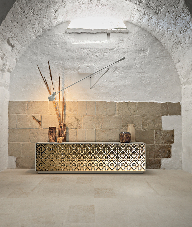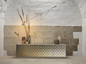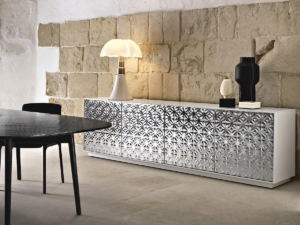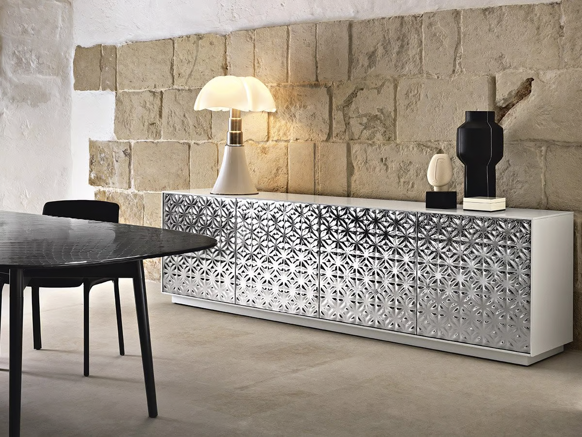 Le design d’Echo, fruit du travail de Marcel Wanders Studio, illustre parfaitement la combinaison de l’artisanat de qualité et de l’innovation technologique caractéristique de Fiam, faisant de ce buffet un véritable objet d’art décoratif. Grâce à ses caractéristiques distinctives, Echo s’est rapidement imposé comme une icône du design contemporain