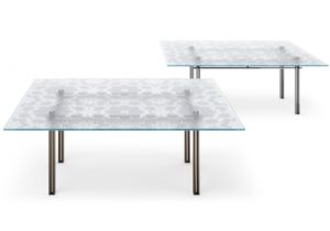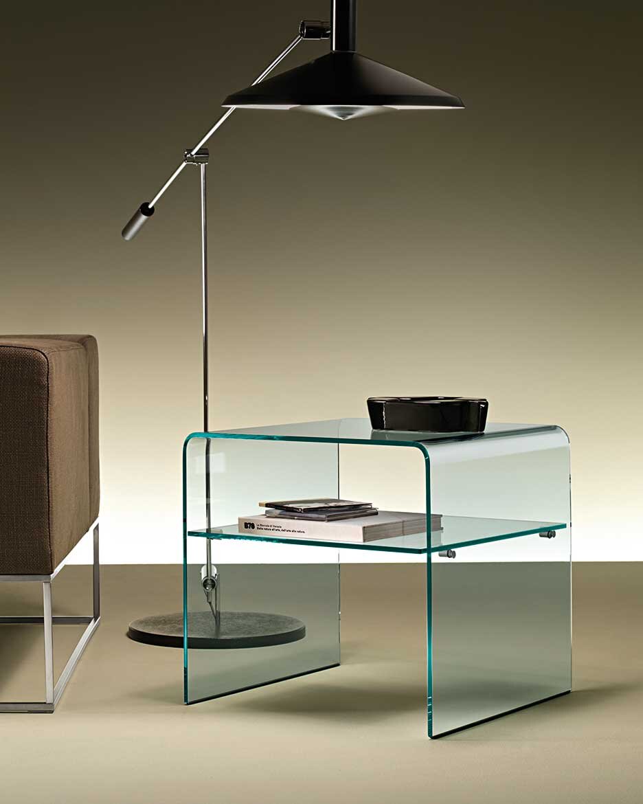 Les meubles design et compléments en verre bombé, une caractéristique emblématique de FIAM Italia, occupent une place de choix dans son catalogue. La collection historique Rialto se distingue par ses lignes essentielles et devenues incontournables. Un plateau en verre se plie sur les côtés pour former les supports, créant une ligne coordonnée de tables, de tables basses, de consoles, d’étagères, ainsi que des meubles intégrés avec des éléments en bois laqué blanc, comme la commode Rialto montée sur roulettes, les bureaux Rialto 1 et Rialto Isola, et la bibliothèque modulaire Inori conçue par Setsu et Shinobu Ito.