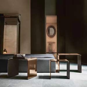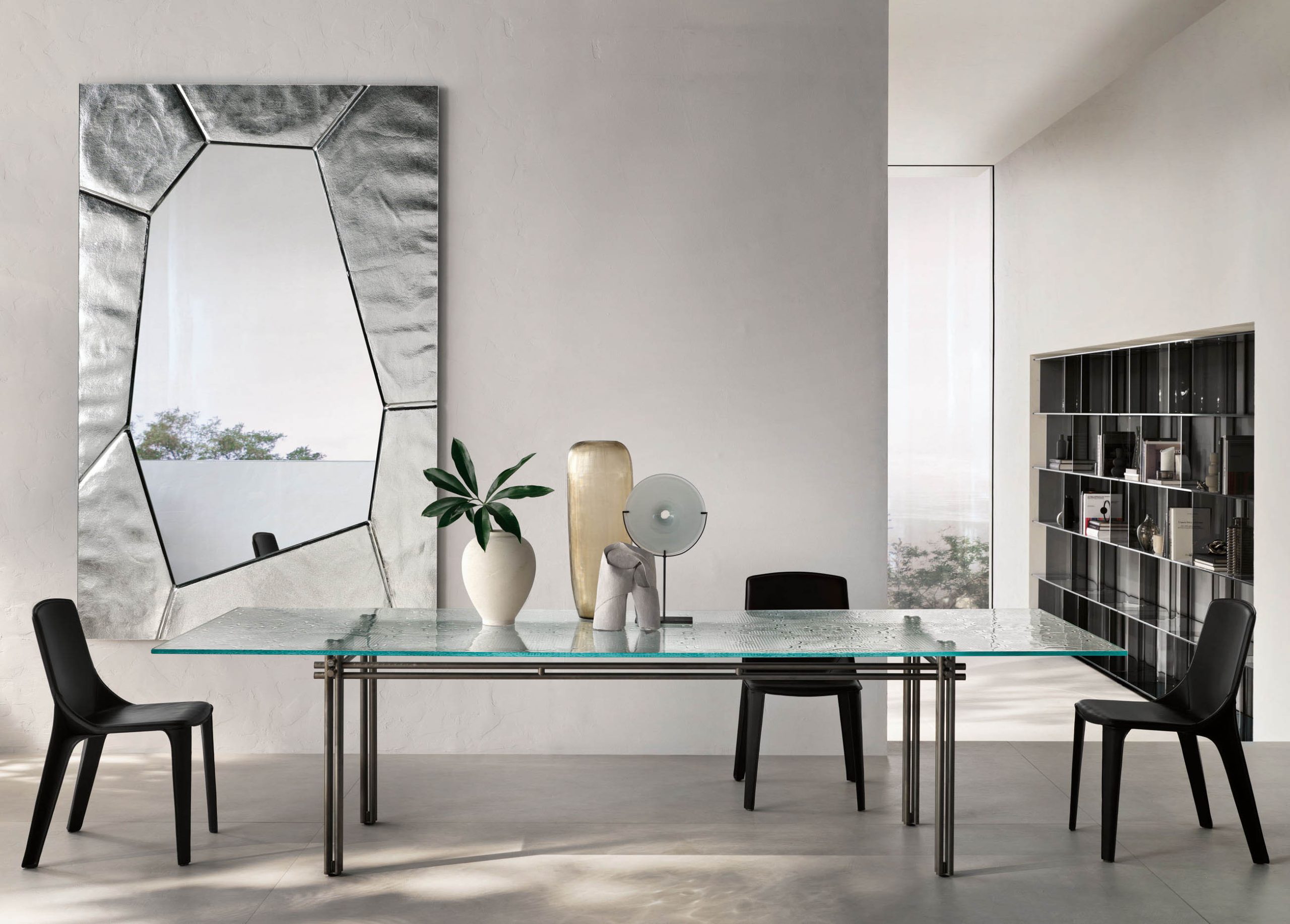 Une autre pièce historique au fort impact esthétique est la table Luxor de Rodolfo Dordoni. Disponible en verre fumé ou en bronze stratifié, le plateau est soutenu par des cylindres en verre de 10 mm, disponibles dans diverses teintes. Les miroirs design, grands protagonistes du catalogue FIAM, sont des éléments emblématiques qui enrichissent le verre depuis des siècles. Parmi les nouveautés récentes, la famille Shift de Francesca Lanzavecchia a été présentée en avant-première au Salone Internazionale del Mobile 2023. Le miroir Rosy, conçu par Doriana et Massimiliano Fuksas, en verre fusionné rétro-argenté, est une pièce iconique qui crée une illusion de profondeur avec seulement 10 mm d’épaisseur. Enfin, la vitrine et le buffet Echo conçue par Marcel Wanders Studio et la collection de tables de repas et de tables basses Cristaline présentée au Salone Internazionale del Mobile 2023 sont également parmi les dernières créations de FIAM Italia.