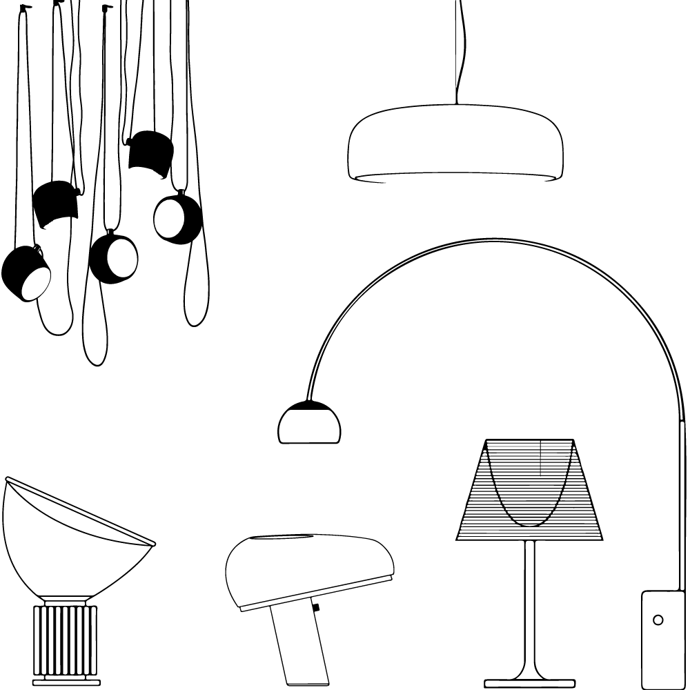 Flos se distingue dès ses débuts en éditant des luminaires design innovants qui demeurent aujourd’hui des classiques du design. La lampadaire Arco, créée par les frères Castiglioni, et la suspension Viscontea, produite grâce à un procédé étrange appelé « cocoon » impliquant des filaments de résine plastique tissés autour d’une structure métallique, en sont d’excellents exemples.