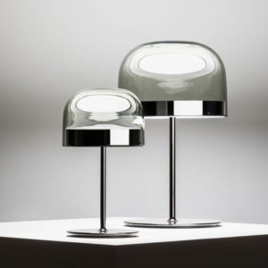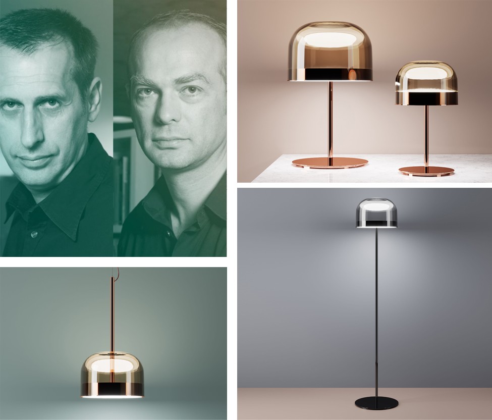 Conçue par Gabriele et Oscar Buratti, la collection de luminaires Equatore réinvente de manière contemporaine la lampe classique avec abat-jour en verre. Contrairement aux abat-jours traditionnels qui contiennent la source de lumière, celui-ci est vide. La lumière provient de deux disques lumineux placés dans une bande métallique centrale visible sur l’abat-jour, évoquant la ligne de l’équateur. Les LED, grâce à des écrans internes superposés, diffusent la lumière uniformément sur les disques, créant un effet magique. Le disque inférieur dirige la lumière vers le bas, tandis que le disque supérieur illumine la cloche en verre pour une lumière douce et diffuse.