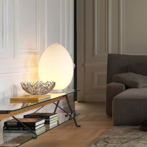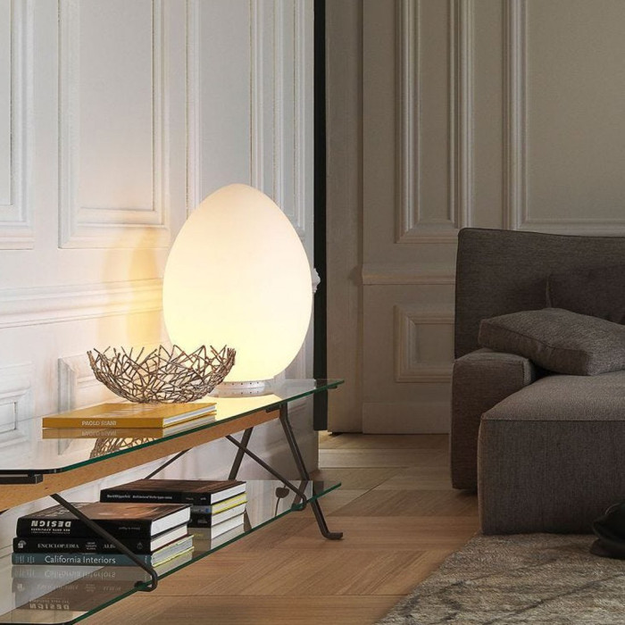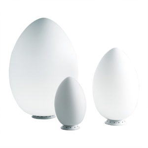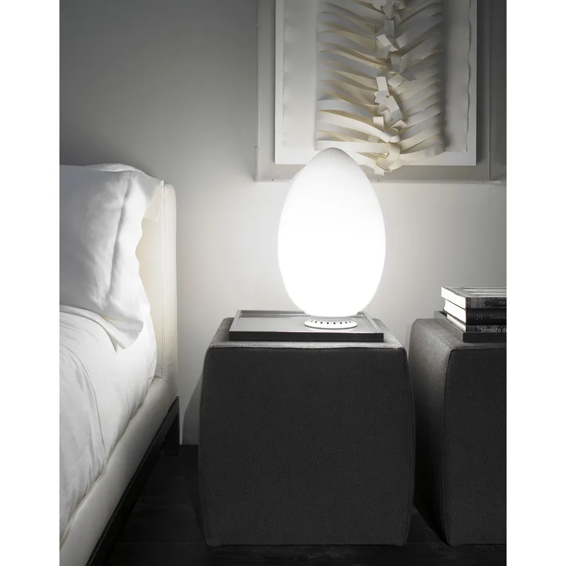 La lampe de table Uovo en forme d’œuf, conçue par Ben Swildens pour FontanaArte, combine élégance et simplicité avec sa monture en métal verni blanc et son diffuseur en verre soufflé blanc satiné. Sa forme douce et courbée s’intègre parfaitement dans tout type d’intérieur, apportant une touche de sophistication et de modernité. Disponible en trois tailles, cette lampe polyvalente offre une solution d’éclairage adaptée à diverses configurations de pièces. Devenue une véritable icône du design, elle incarne le style intemporel et l’innovation de FontanaArte.
