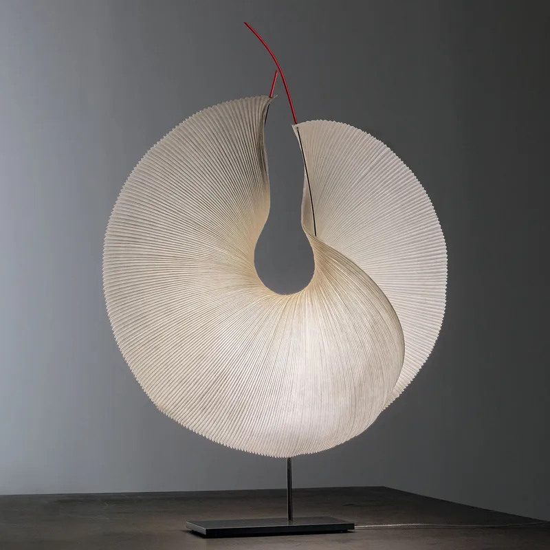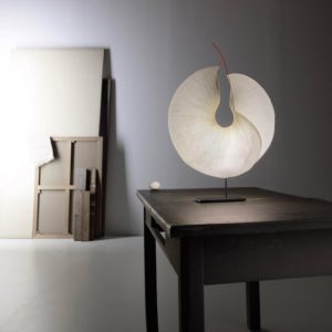 La lampe à poser Yoruba Rose de Ingo Maurer est une sculpture lumineuse en papier, métal, acier spécial et silicone. Son design élégant, avec un arc en papier tendu par de fins câbles métalliques, diffuse une lumière douce et agréable, idéale pour les espaces de relaxation. L’abat-jour en papier japonais est minutieusement travaillé dans la manufacture de Dagmar Mombachs jusqu’à atteindre la forme désirée .Yoruba Rose, également disponible en version lampadaire sur demande, fait partie de la série MaMo Nouchies, icône du design connue pour ses abat-jours en papier japonais de haute qualité.