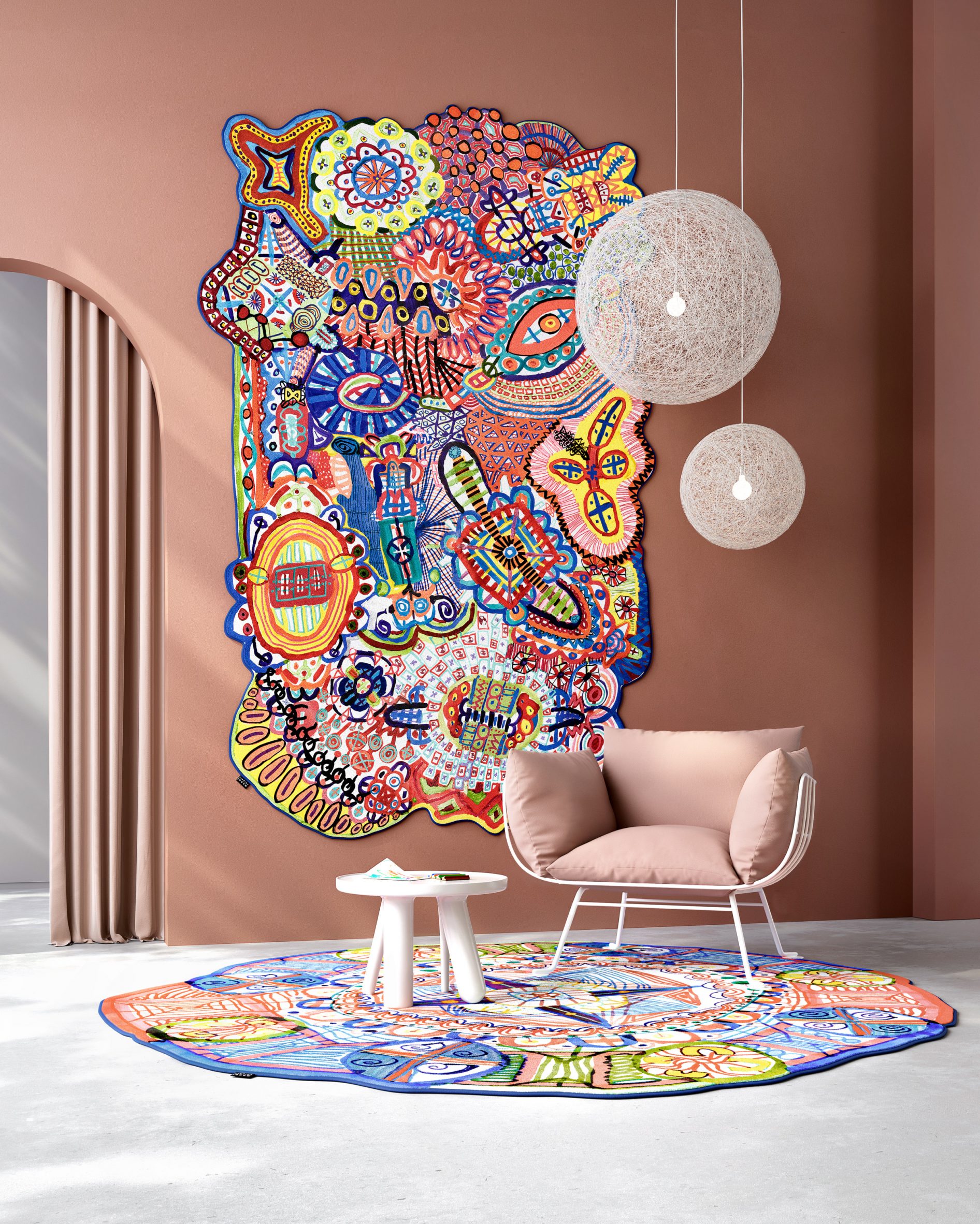 Véritables œuvres d’art, ces tapis sont signés par des grands noms de la mode, du design et des arts visuels : Maison Christian Lacroix, Bertjan Pot, Studio Job, Klaus Haapaniemi…