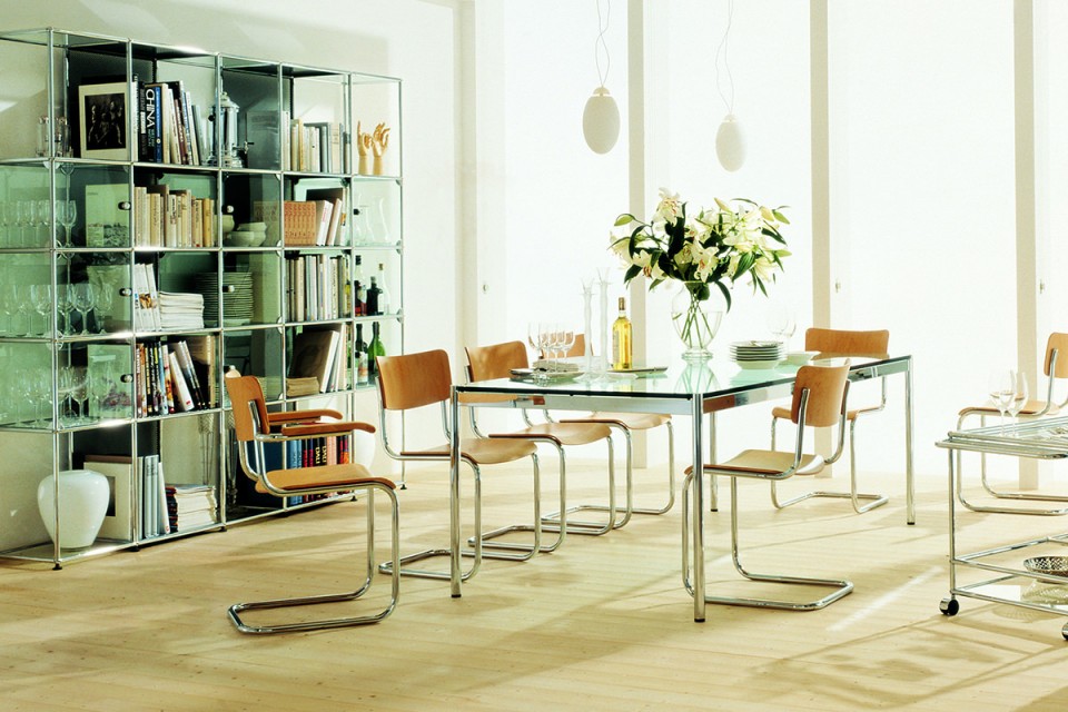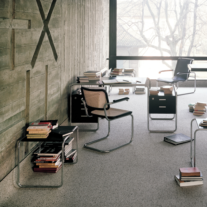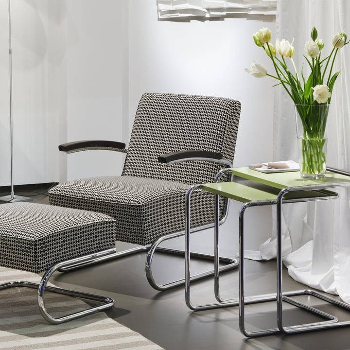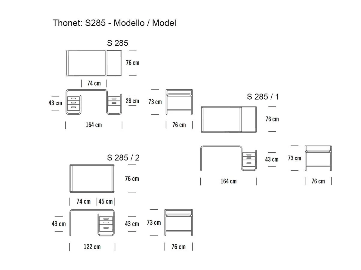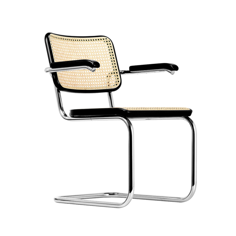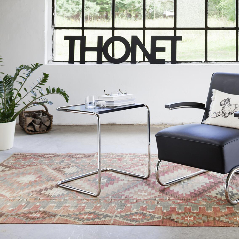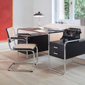 Au fil des décennies, Thonet étend sa gamme pour inclure des meubles rembourrés, des tables et des accessoires pour la maison et le secteur contract, devenant des jalons de l’histoire du design, toujours appréciés et vendus aujourd’hui. Les chaise , tables et accessoires Thonet sont souvent nommés de manière simple, presque comme des codes alphanumériques, préservant ainsi l’esprit artisanal de leur fondateur. Parmi les icônes historiques du mobilier, on trouve la table élégante B 10 ainsi que les bureaux de la gamme 285, tous conçus par Marcel Breuer. Leur clarté formelle et la légèreté du cannage caractérisent également les sièges S 32 et S 64 édité depuis 1930, également créés par Breuer., et la chaise à bascule en acier tubulaire S 826 imaginée par Ulrich Böhme pour Thonet. On peut citer Mart Stam, un architecte et designer néerlandais, est connu pour avoir conçu les premières chaises S33 en porte-à-faux en utilisant des tubes d’acier, une innovation qui a été réalisée en collaboration avec Thonet.
