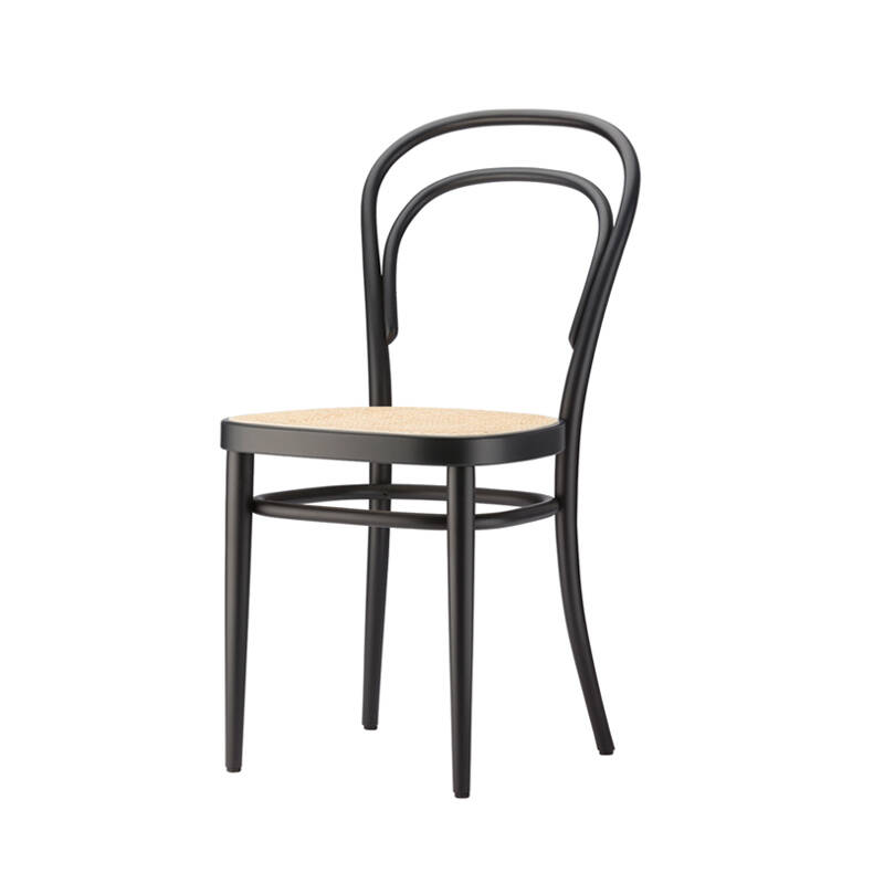 L’épopée de Thonet débute en 1859 lorsque son fondateur, Michael Thonet, ébéniste devenu pionnier du design industriel, s’installe à Vienne. Soutenu par le prince de Metternich, il révolutionne l’industrie du meuble en introduisant la technique novatrice de cintrage du bois de hêtre massif. Sa création emblématique, la chaise n° 14, rebaptisée 214, marque une avancée décisive en remodelant les formes des meubles classiques de l’époque tout en s’adaptant à la production industrielle en série. Thonet devient rapidement une entreprise internationale, et la chaise n°14 s’impose comme le symbole des cafés viennois. Avec près de 150 ans d’existence, la chaise 214 demeure l’une des chaises les plus vendues au monde, une icône utilisée dans des films et des œuvres d’art renommés.