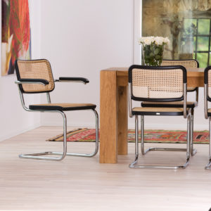 Fort d’un héritage de deux siècles, Thonet se distingue en tant que l’un des plus anciens fabricants de meubles au monde, occupant une place prépondérante dans l’évolution du design et l’avènement du mobilier moderne. Sa collection regorge de classiques du design, qu’il s’agisse de pièces en bois courbé ou en acier tubulaire héritées de l’époque Bauhaus, incarnant l’innovation, la qualité et la flexibilité qui caractérisent la philosophie de cette marque emblématique.