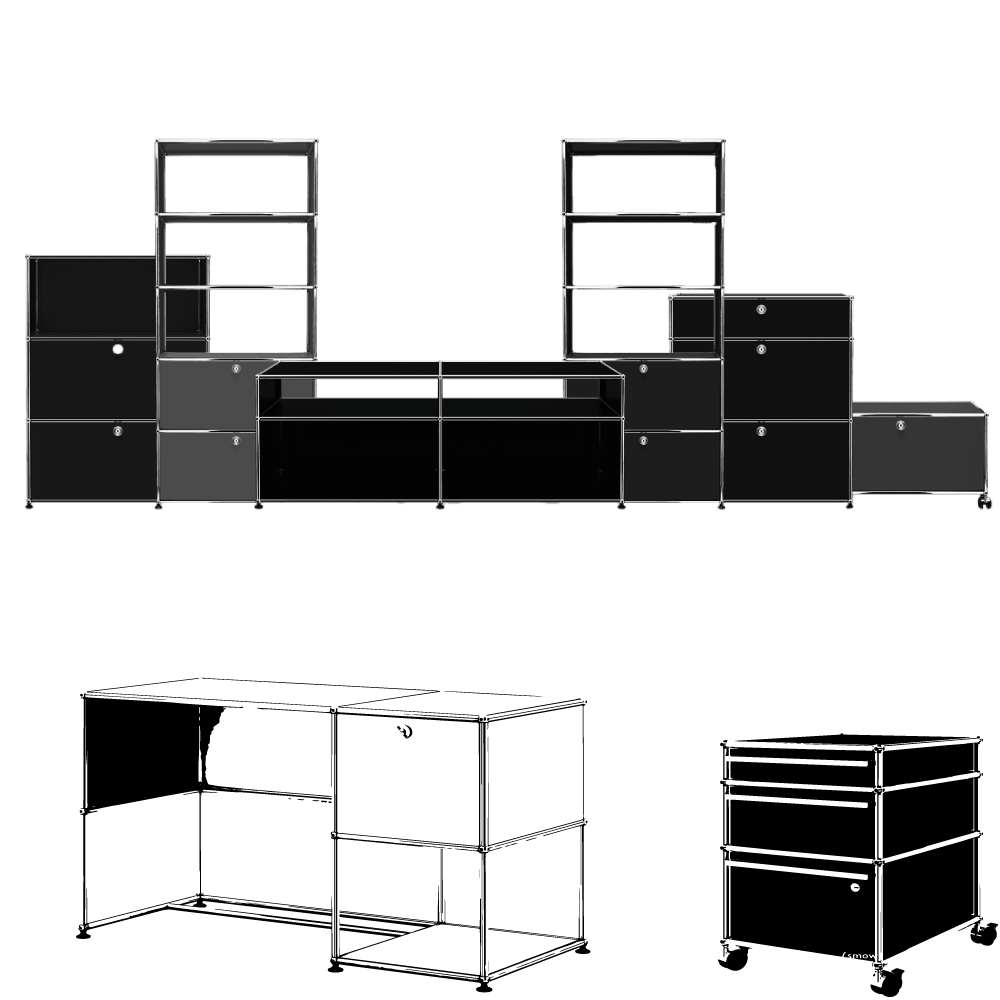 Avec USM, les possibilités sont vastes et quasiment infinies. Que ce soit pour la conception d’éléments d’ameublement tels que des buffets, meubles TV, commodes, des tables basses, dressings, bibliothèques, tables d’appoint,console, vaisseliers, chevets ou des solutions de rangement diverses, vous bénéficiez d’une liberté totale de création. Grâce au système modulaire USM Haller , vous avez la possibilité de concevoir des configurations sur mesure qui s’intègrent parfaitement à vos besoins et à votre style. Que votre objectif soit d’optimiser l’espace de rangement, de rationaliser l’organisation ou de créer un design unique, USM offre une solution polyvalente et élégante pour chaque pièce de votre maison.