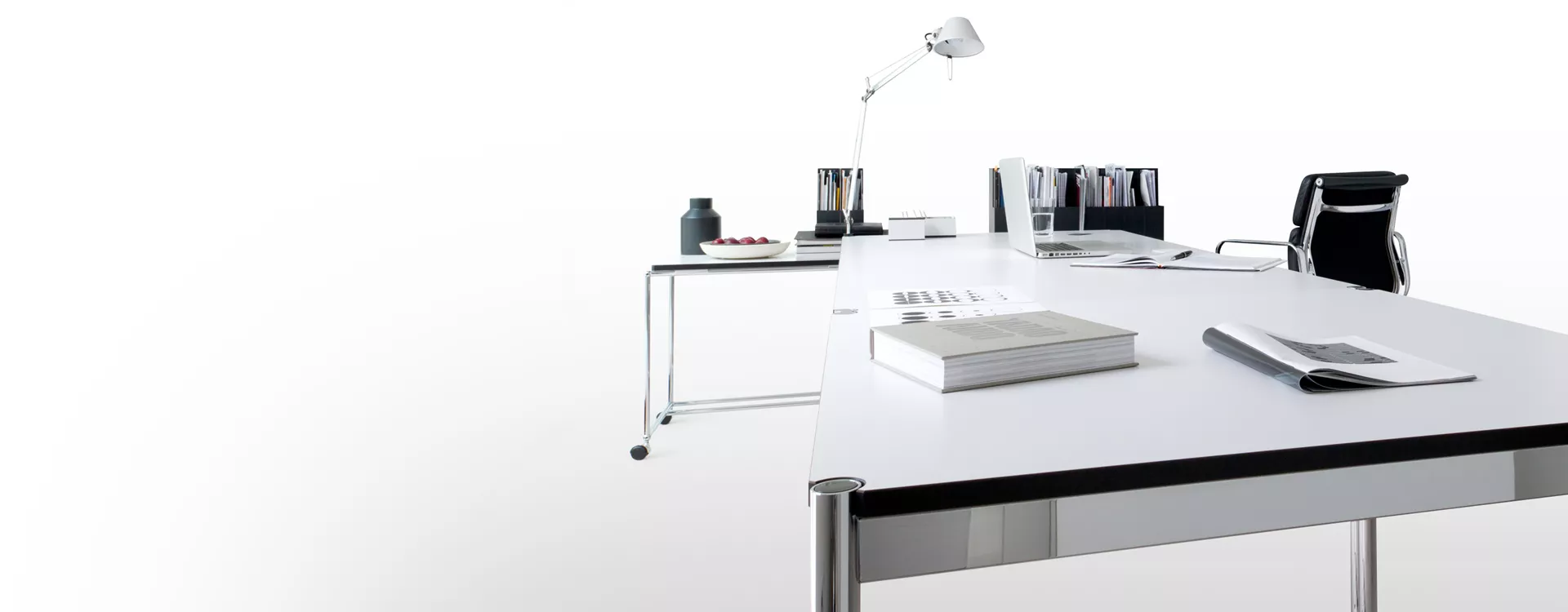 Le cœur du système USM Haller est sa structure en tubes chromés reliés par des boules de connexion uniques en leur genres, offrant des possibilités infinies d’aménagement. Chez ICÔNES nous vous aidons à concevoir des meubles d’une polyvalence unique.
