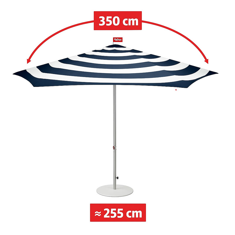 - Dimensions : Diamètre parasol ouvert 350 cm- Diamètre perche 3,8 cm – Base du parasol en option