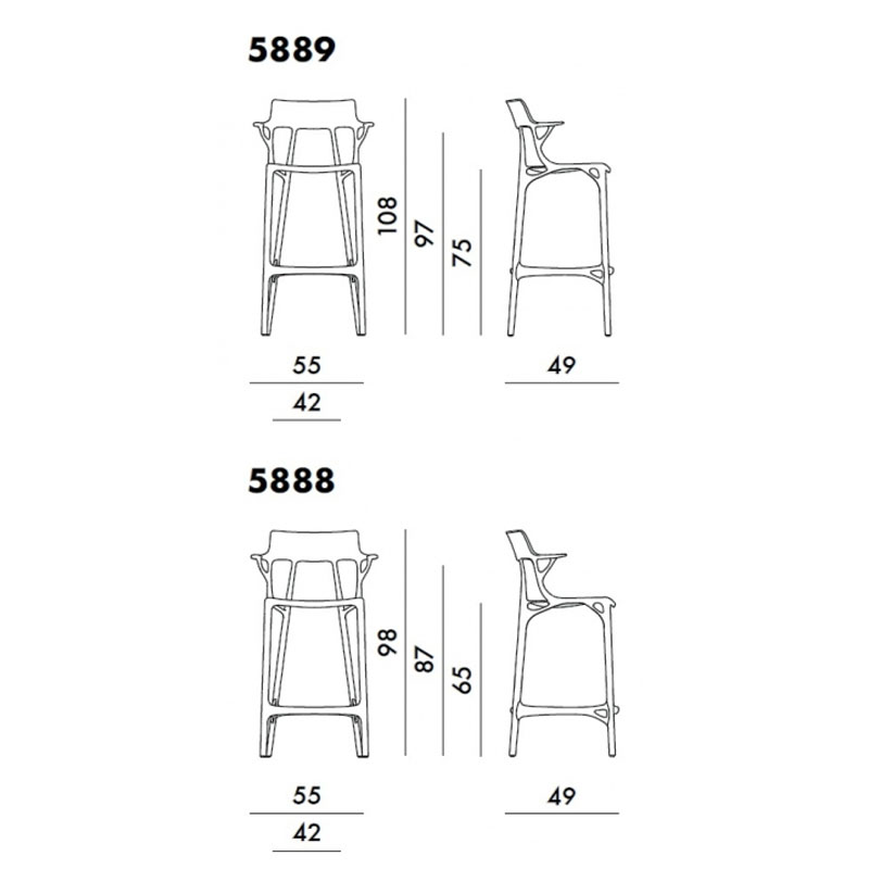 Conçu par Philippe Starck pour la marque Kartell, le tabouret haut A.I.RECYCLED incarne l’harmonie entre confort, durabilité et conscience écologique. Sa large assise, accueillante et ergonomique, épouse les courbes naturelles du corps pour offrir un confort optimal. Disponible en trois teintes élégantes – noir, blanc et gris – il se décline en deux hauteurs d’assise : 65 cm pour les comptoirs et 75 cm pour les bars.