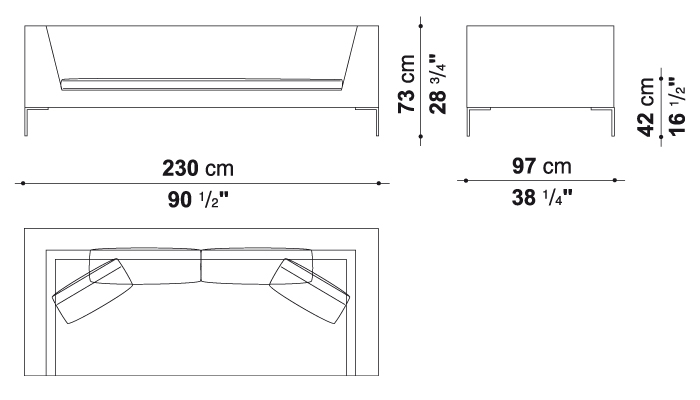 - Dimensions : L 230 X Prof : 97 X Hauteur d’assise : 42