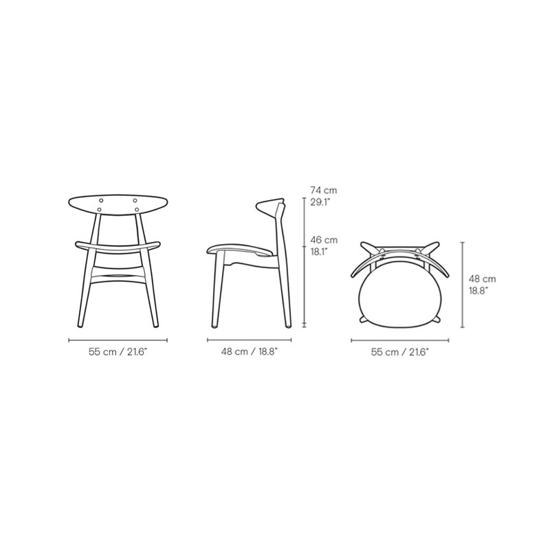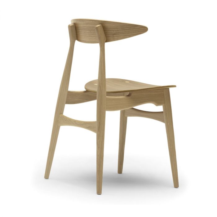 Avec ses formes organiques claires et son équilibre parfait entre sobriété et confort, la CH33T révèle l’approche visionnaire de Wegner. Sa hauteur, sa profondeur et l’angle de son assise sont minutieusement étudiés pour s’adapter à l’utilisateur. Le dossier courbé en placage pressé, orné de capuchons ronds visibles, confère à la chaise son caractère distinctif.