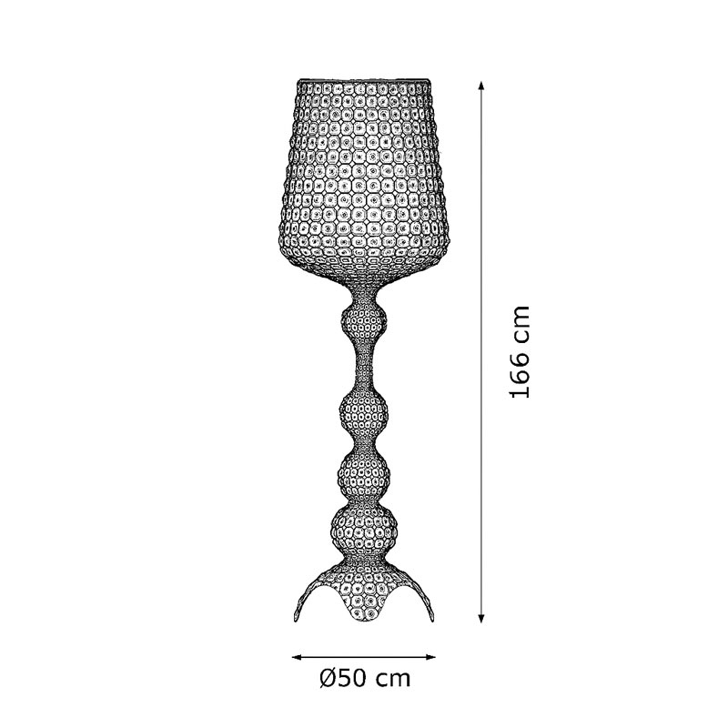 Imaginé par Ferruccio Laviani pour Kartell, le lampadaire Kabuki allie raffinement et innovation avec une silhouette élancée habillée de dentelle ajourée. Son design néo-baroque joue subtilement avec la lumière, projetant de superbes ombres graphiques dans l’espace.