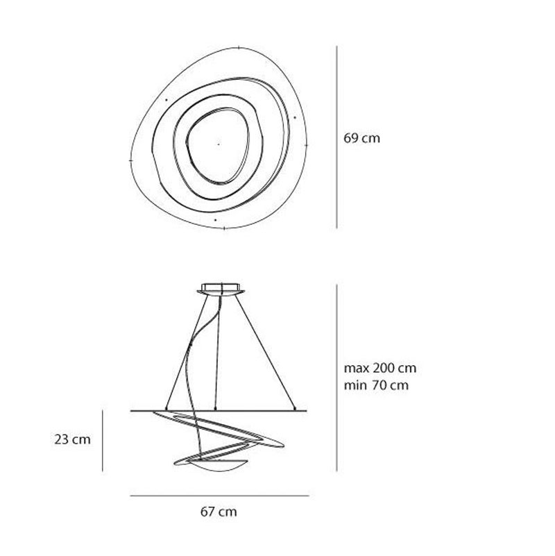 Créée par Giuseppe Maurizio Scutellà pour Artemide, la suspension Pirce Micro offre une interprétation poétique de la lumière et de la forme. À partir d’un mince disque, des volutes sculpturales se déploient dans l’espace, flottant et s’enroulant avec une légèreté aérienne, créant un jeu magique d’ombres et de reflets.
