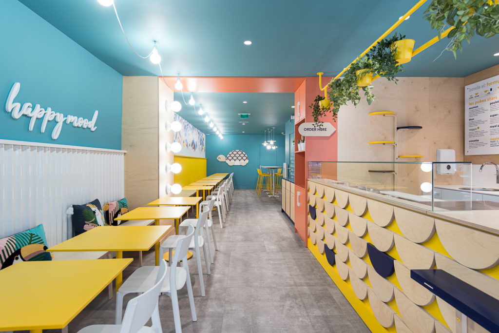 Pour ce faire, le réseau Onolulu a collaboré avec le cabinet d’architectes Decodheure, qui a conçu un lieu invitant chacun à prendre le temps de se restaurer. Le décor met en valeur les matériaux naturels et les couleurs douces, avec une touche d’exotisme. Cependant, l’enseigne n’a pas pour autant négligé ses autres canaux de distribution : que ce soit à emporter, sur place, en livraison ou en click & collect, le même soin est apporté à chaque canal pour offrir une expérience client unique et agréable à tous.